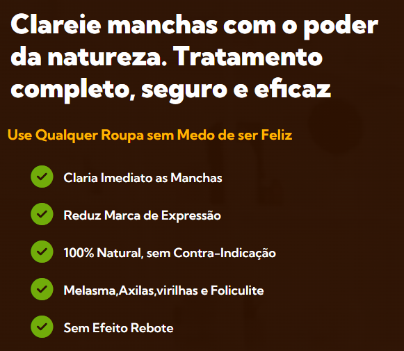 Pele lisinha, clara e uniforme do jeito que você sempre quis! Com o poder natural do Clareador Amazolé, você trata manchas com segurança e vê resultado em poucas semanas.